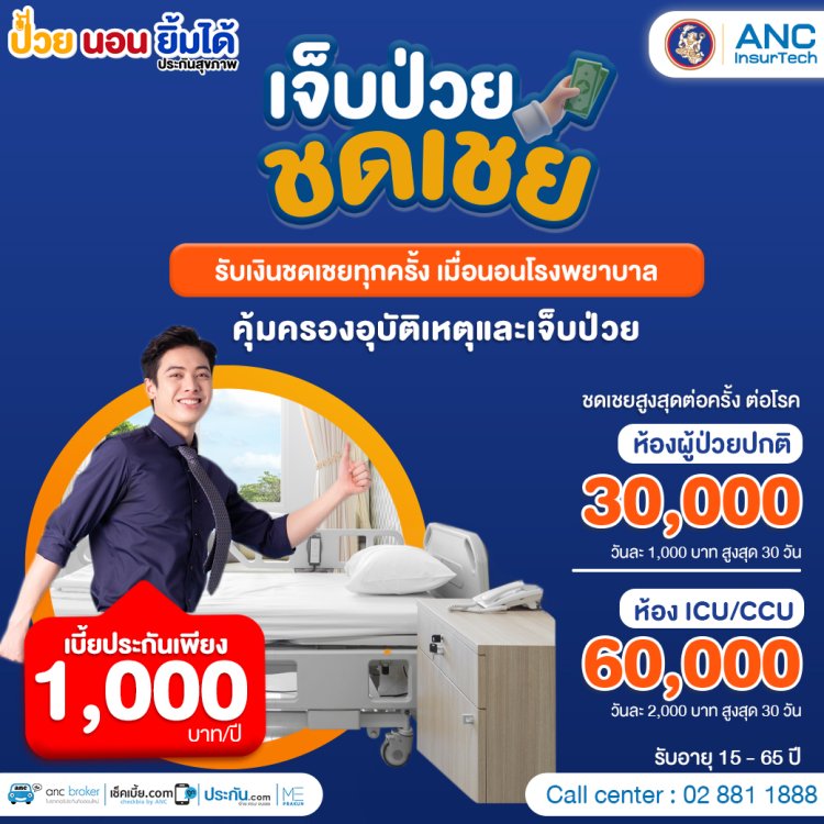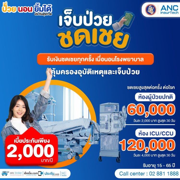 ในกรณีเข้ารับการรักษาเป็นผู้ป่วยใน ผู้เอาประกันจะได้รับเงินชดเชยรายวันระหว่างเข้ารักษาตัว (ขึ้นอยู่กับกรมธรรม์)