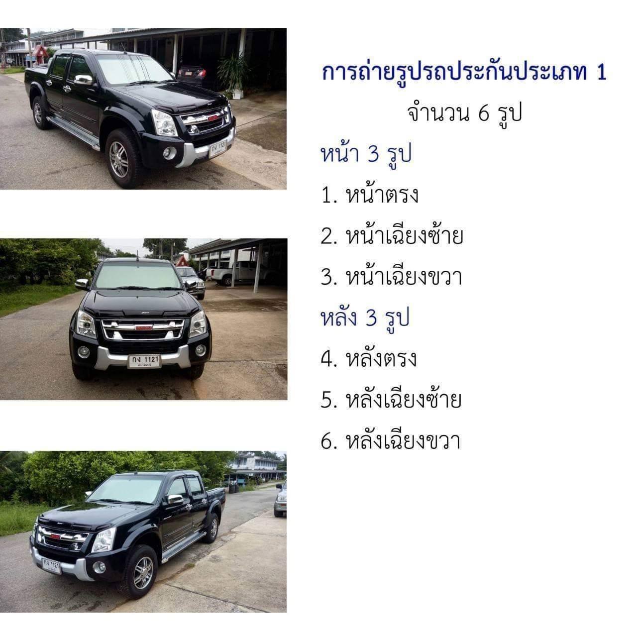 สำหรับประกันชั้น 1 ที่ผู้เอาประกันต้องถ่ายรูปเอง โดย 7 รูปแรกจำเป็นต้องใช้ และเพิ่มเติม 3 รูปสุดท้าย หากทำได้รูปซ้าย ตรง