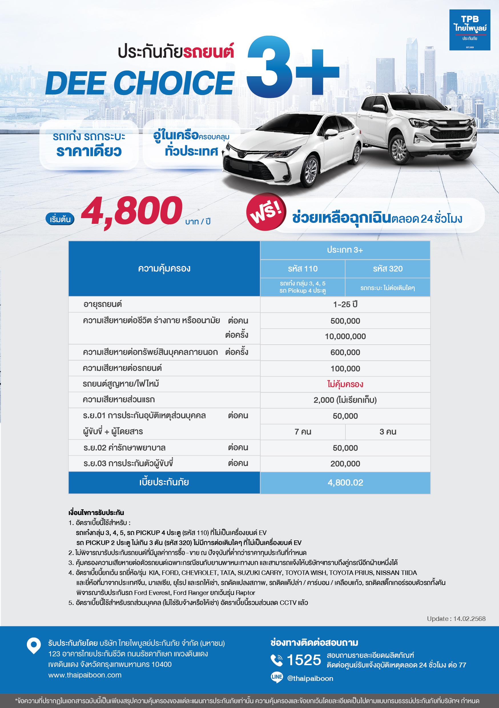 กะบะ ปิคอัพ จ่ายเพียง 4,800 บาท/ปี คุ้มครองซ่อมรถเราและคู่กรณี ซ่อมรถเรา 100,000 /ครั้ง ซ่อมคู่กรณี สูงถึง 1,000,000 บาท/ครั้ง