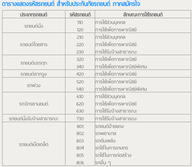- รหัส 110 คือ รถยนต์ใช้ส่วนบุคคุล ไม่มีการรับจ้างหรือให้เช่า