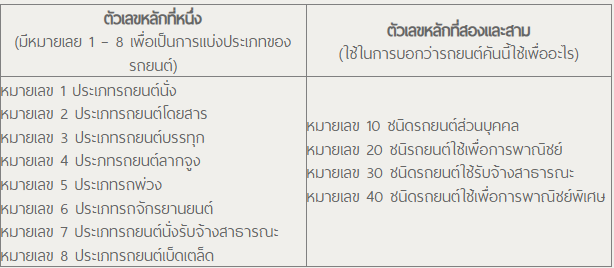 • ตัวเลขหลักที่หนึ่ง แสดงถึงประเภทรถยนต์