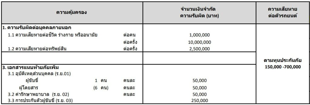 – ประเภทรถยนต์ที่รับประกันภัย รถยนต์นั่งส่วนบุคคลไม่เกิน 7 ที่นั่ง และไม่ใช่รับจ้างหรือให้เช่า