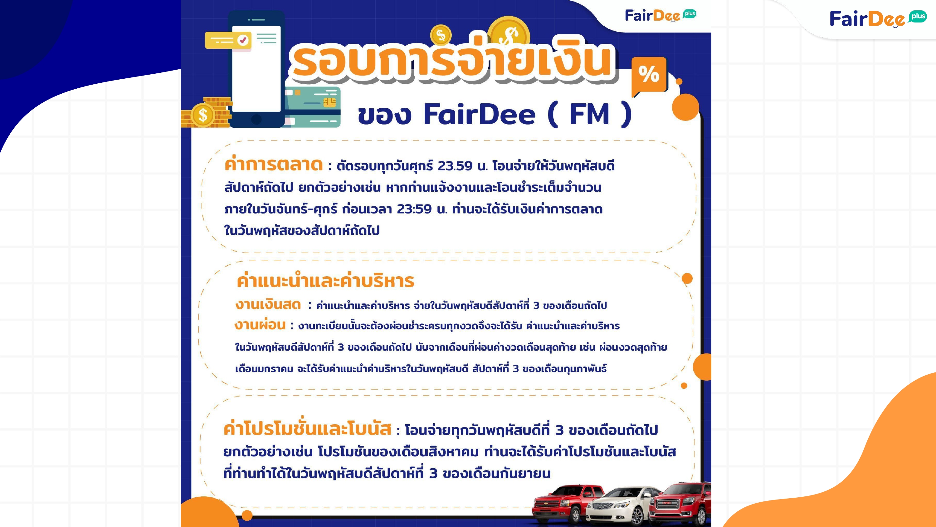 เป็นแผนการตลาดที่ บริษัท แฟร์ดี โบรกเกอร์ ประกันภัย จัดทำขึ้นเพื่อให้สมาชิกทุกระดับชั้นสามารถสร้างรายได้อย่างไม่จำกัด ยิ่งทำมากท่านก็ยิ่งได้รับรายได้ที่มากขึ้น แผนการตลากนี้เปรียบเสมือนการขายอีกรูปแบบหนึ่ง แต่เป็นการขายแบบแนะนำบอกต่อคนรอบข้างที่คุณรู้จัก หรือแนะนำบอกต่อคนรอบข้างที่กำลังมองหาอาชีพเสริม หรือกำลังมองหาอาชีพหลัก เพื่อร่วมเป็นหนึ่งในธุรกิจของเราโปรดทำความเข้าใจได้ดังต่อไปนี้
