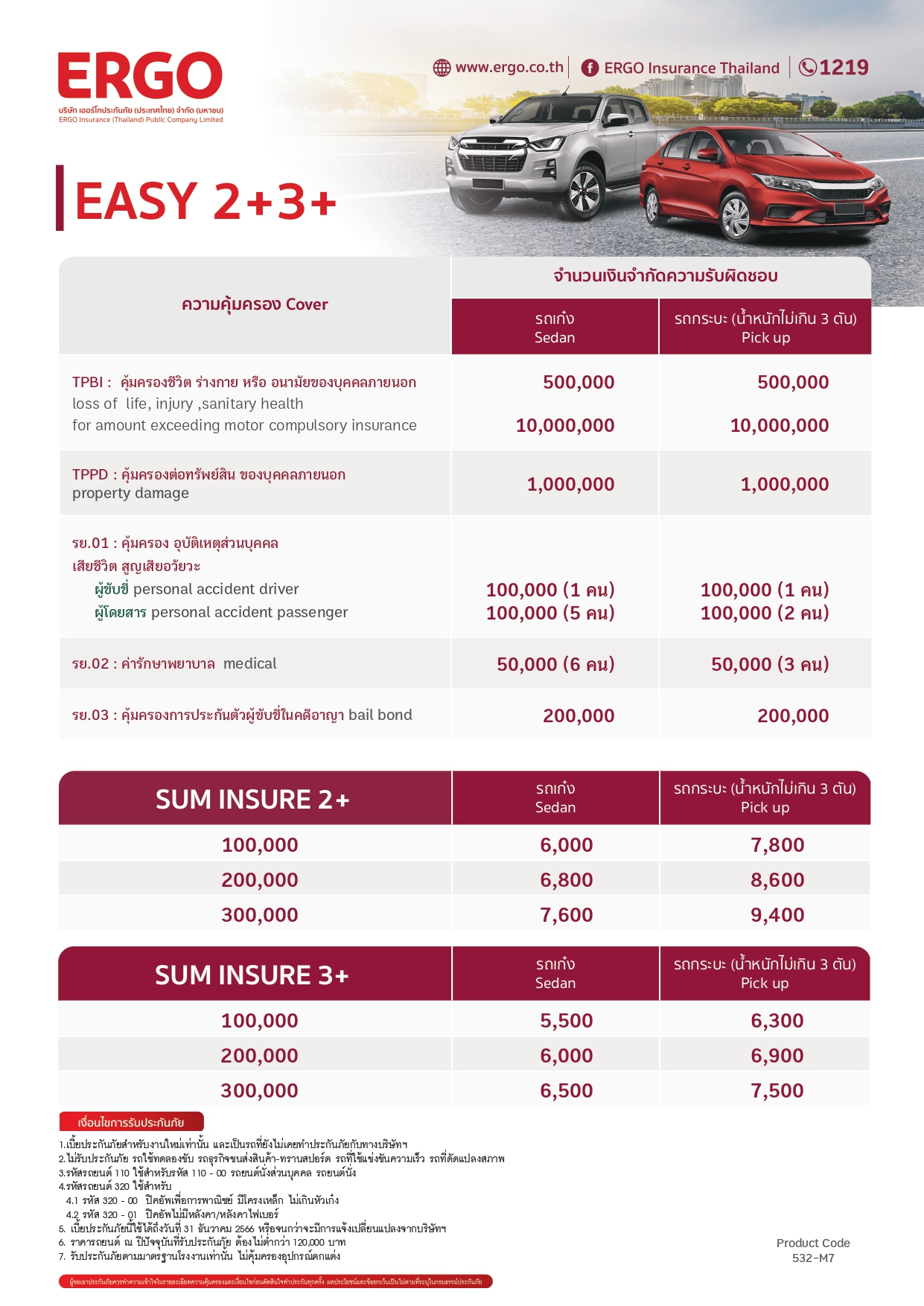 o คุ้มครองความรับผิดต่อทรัพย์สินบุคคลภายนอก สูงสุด 1,000,000 บาท