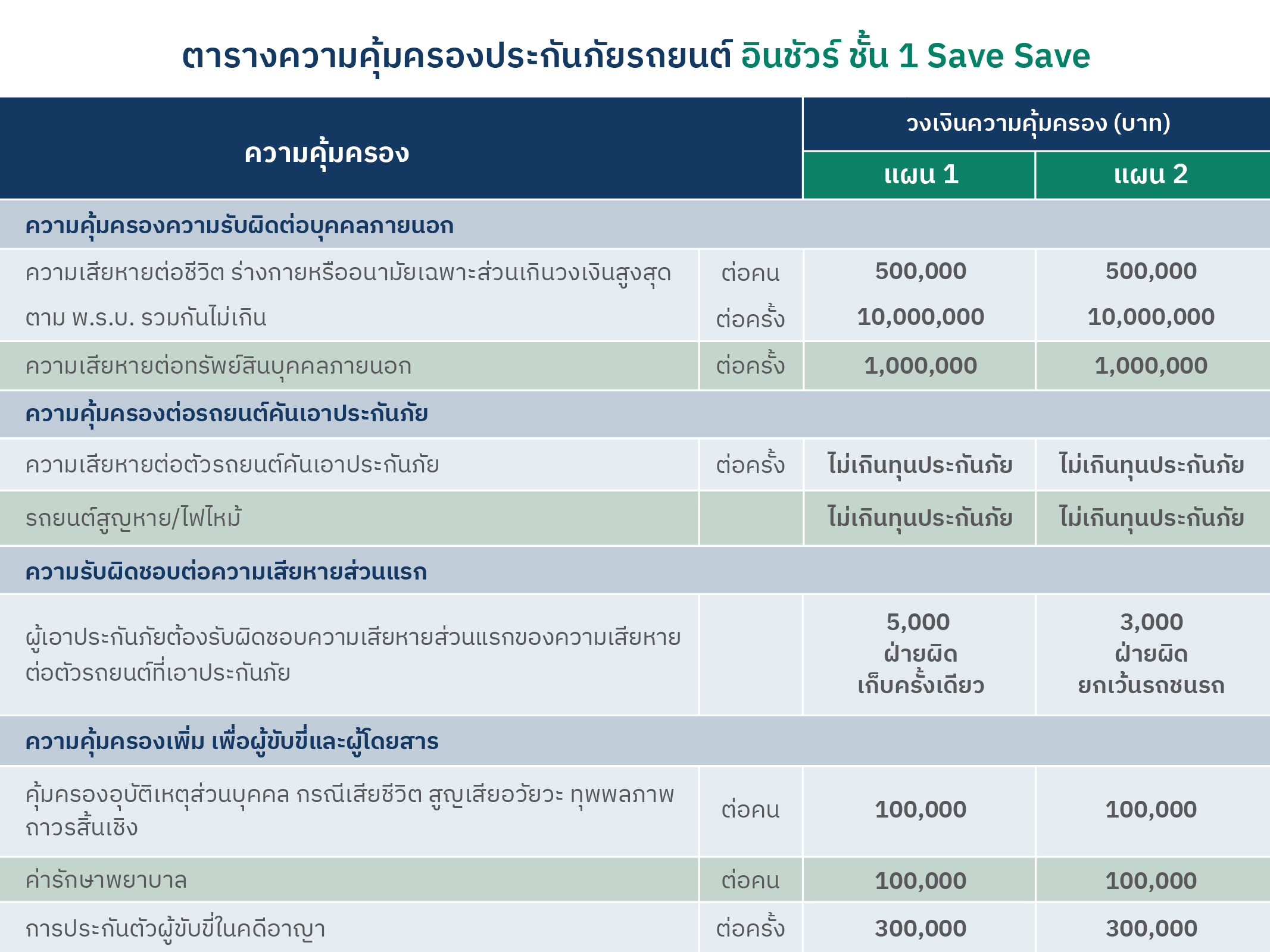 ประกันรถยนต์ อินชัวร์ชั้น 1 Save Save คุ้มครองครบชัวร์ ราคาสบายๆ