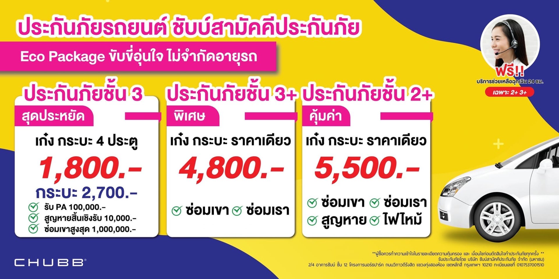 CHUBB 2+ 3+ Eco Package ประกันภัยรถยนต์ ราคาประหยัดจาก ซับบ์สามัคคีประกันภัย ถูกและดีต้อง 2+ 3+ Eco Package เท่านั้น