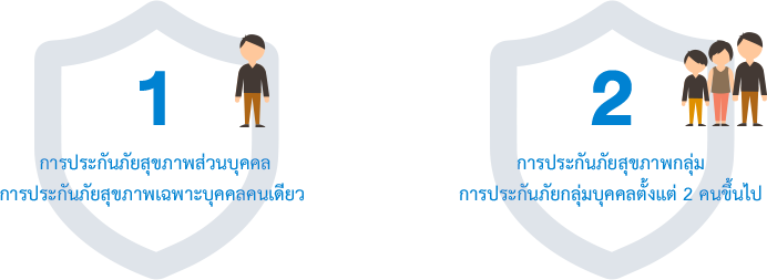 การประกันภัยสุขภาพแบ่งออกเป็น 2 ประเภทใหญ่ๆ ได้แก่ การประกันภัยสุขภาพส่วนบุคคล และการ ประกันภัยสุขภาพกลุ่ม