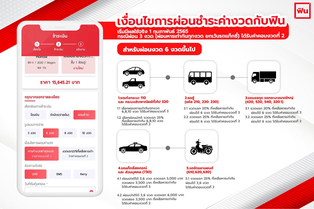 ประกาศปรับเงื่อนไขการผ่อนกับฟิน **มีผลตั้งแต่วันที่ 1 กุมภาพันธ์ 2565 เป็นต้นไป
